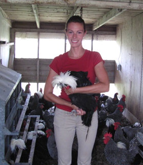 Working with the White Crested Black Polish chicken, one of the many chickens breeds at UD.